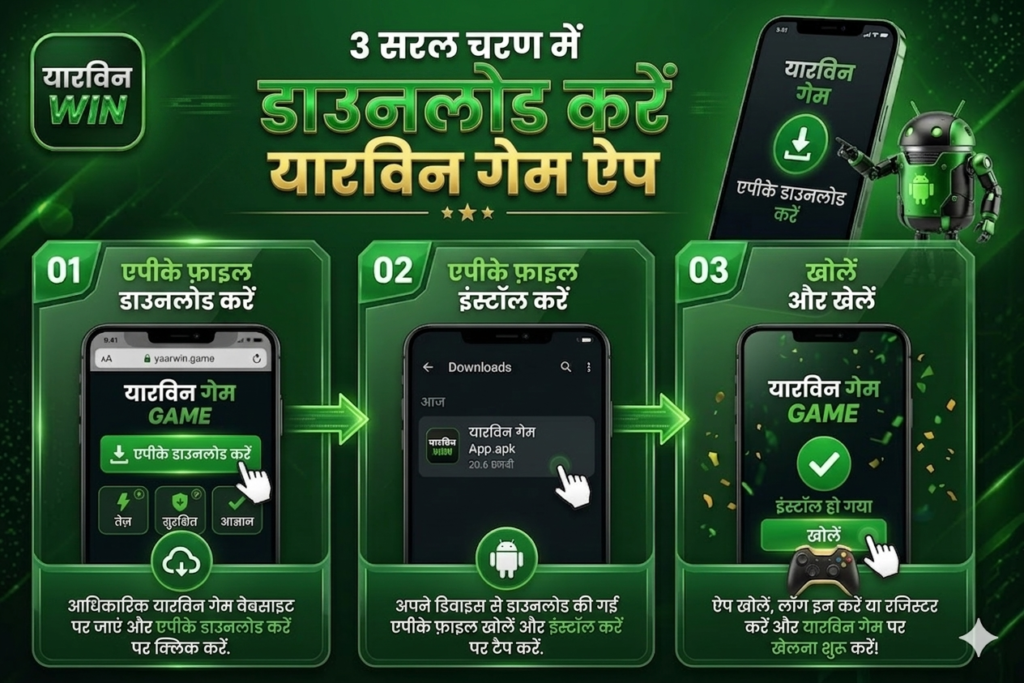 YaarWin app आमतौर पर Google Play Store पर उपलब्ध नहीं होता, इसलिए users को official website या trusted sources से APK file download करनी होती है। अगर आप पूरी step-by-step details चाहते हैं, तो आप हमारी पूरी Yaar Win Game App Download guide भी देख सकते हैं।